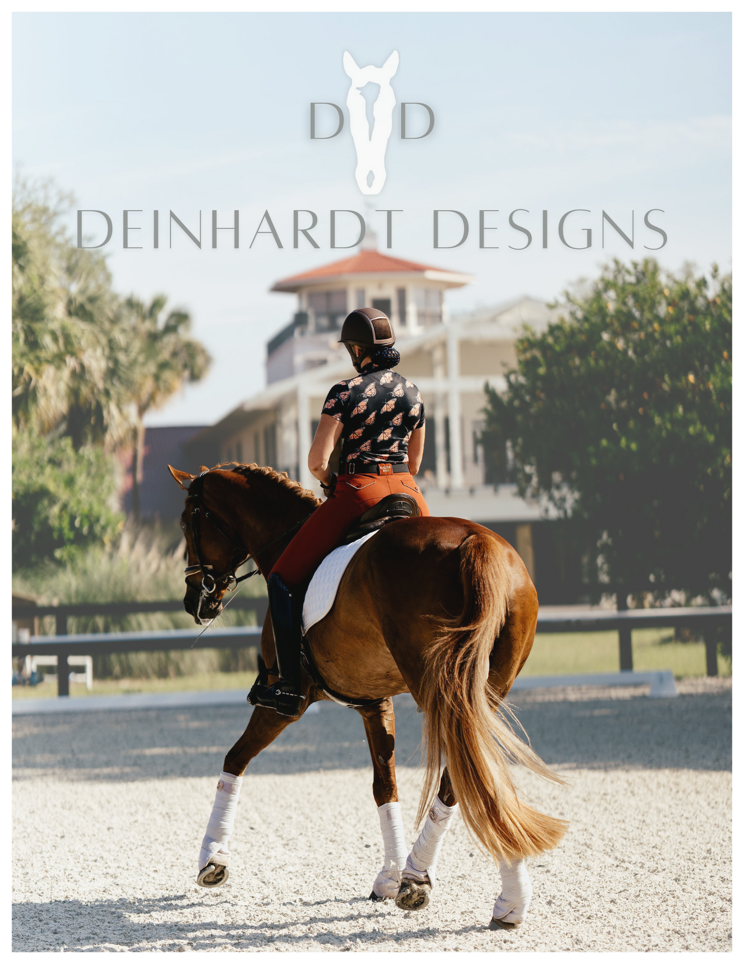 Deinhardt Designs envisions a world where style meets substance, where art and apparel merge seamlessly to tell a story. We strive to become the go-to destination for equestrians of all disciplines, backgrounds, and experience levels who are united by a passion for horses. Our clothing is a canvas for self-expression, reflecting the bond that ties us together as a community.Our designs are crafted with care for equestrians of all disciplines, backgrounds, and experience levels. Whether you're a seasoned rider, a beginner, or somewhere in between, our apparel speaks to your shared passion for horses. We cater to individuals who seek exceptional equestrian apparel that embodies their love for these majestic creatures and unites them in a common journey.
