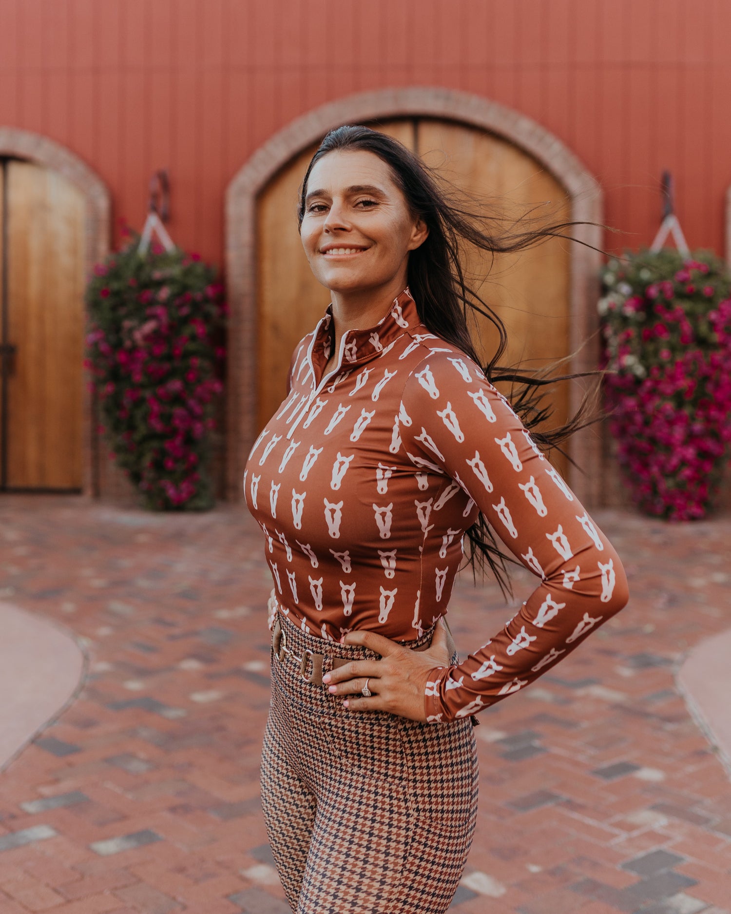This particular Limited Edition color of our DDF print is named after Beth, who is a long-time friend and client of Ally’s. Beth’s horse Omega has been in Ally’s dressage training program for 2 years, and happens to look particularly dashing in rust!