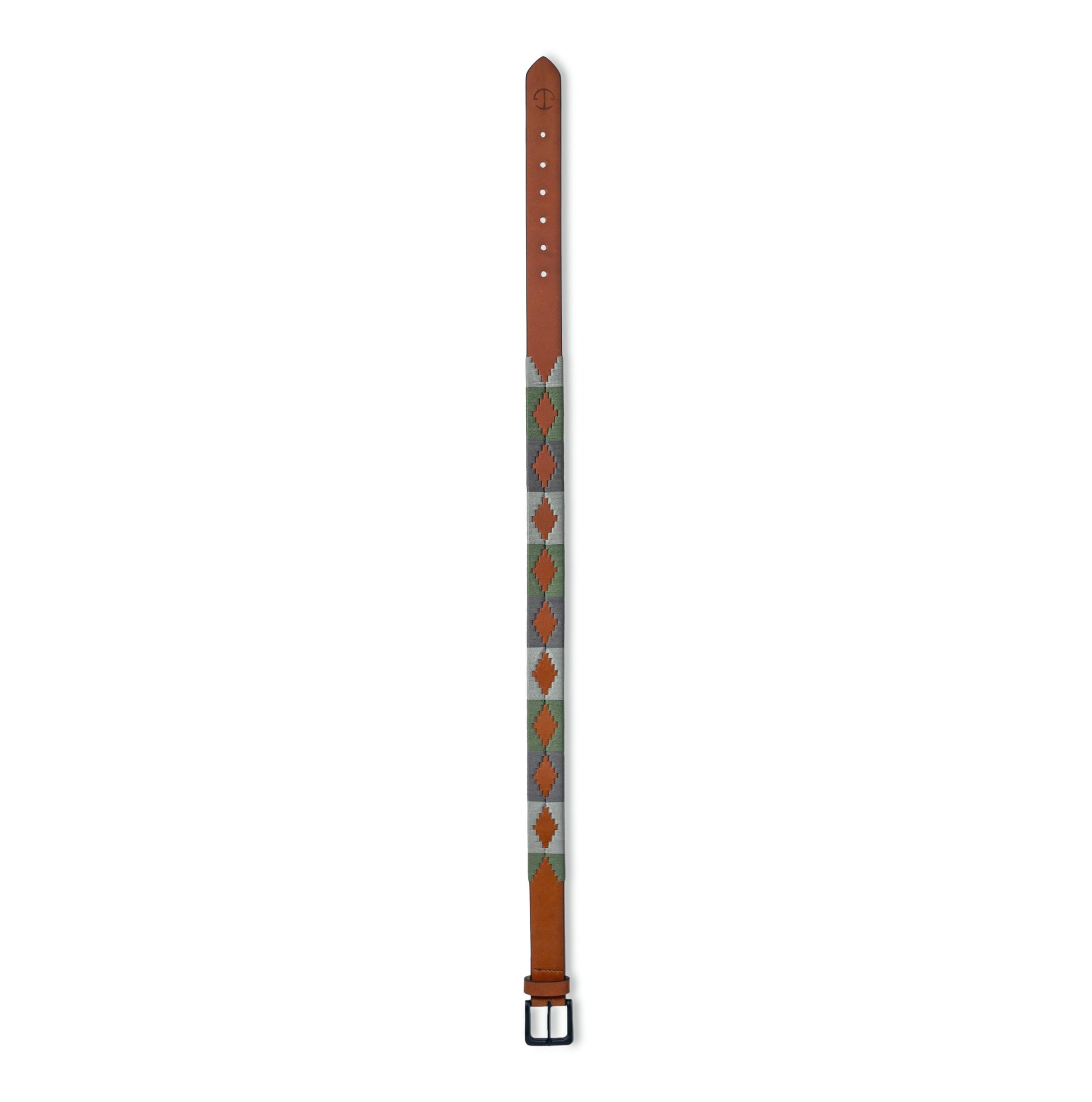 El Valle - Sage Green, Willow & Silver Cognac Leather Polo Belt