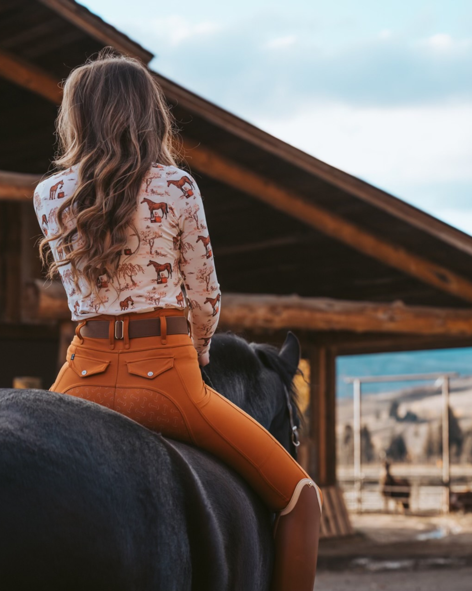 Rendered in warm, hand-sketched tones, the print tells a story of heritage, artistry, and equestrian passion. Whether worn in the ring or styled for everyday, this piece is as versatile as it is meaningful—a true collector’s design for those who live and breathe the equestrian lifestyle.